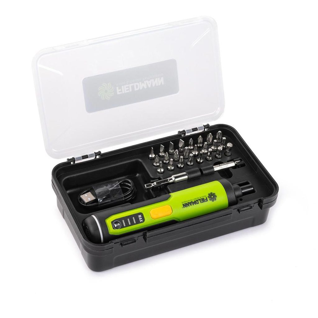 Aku skrutkovač FIELDMANN FDS 10105-A Aku skrutkovač FIELDMANN FDS 10105-A s výkonom Li-Ion batérie o kapacite 1 300 mAh a napätím úlohu. Jeho rýchlosť 250 otáčok za minútu zaisťuje efektívnu prácu, ktorú oceníte pri drobnejších opravách alebo montáži nového nábytku.