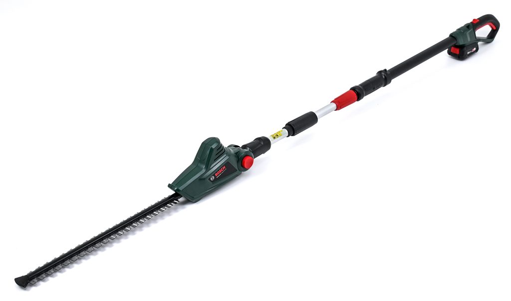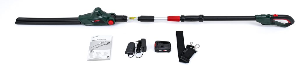 Aku teleskopický plotostrih Bosch UniversalHedgePole 18 má ergonomickú konštrukciu pre ľahké strihanie vysokých živých plotov. Vďaka teleskopickej tyči s nastaviteľnou výškou a otočnou hlavou dosiahnete až do výšky 2,6 metra bez námahy. S antiblokovacím systémom Bosch zabezpečuje nepretržité výkonné rezanie bez zásekov. lítium-iónovým akumulátorom.