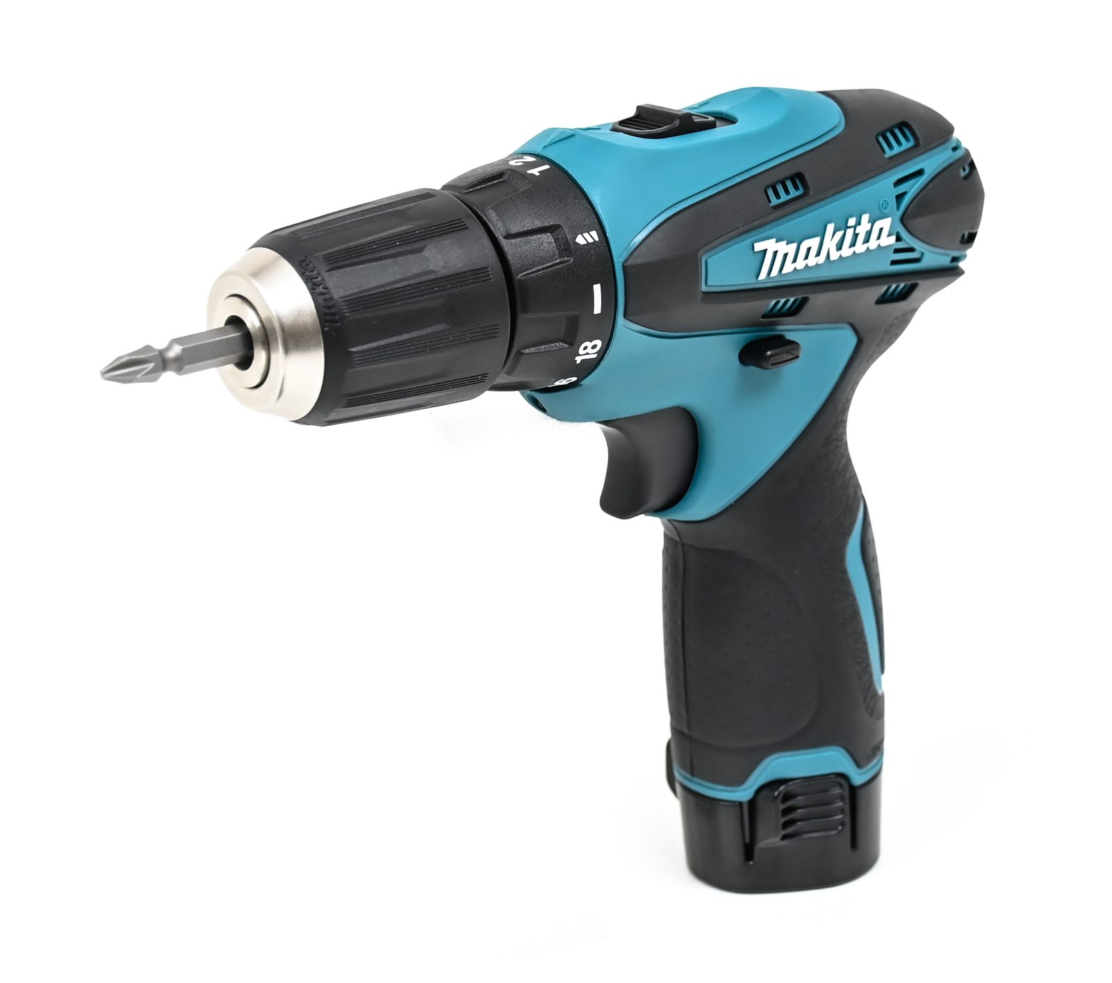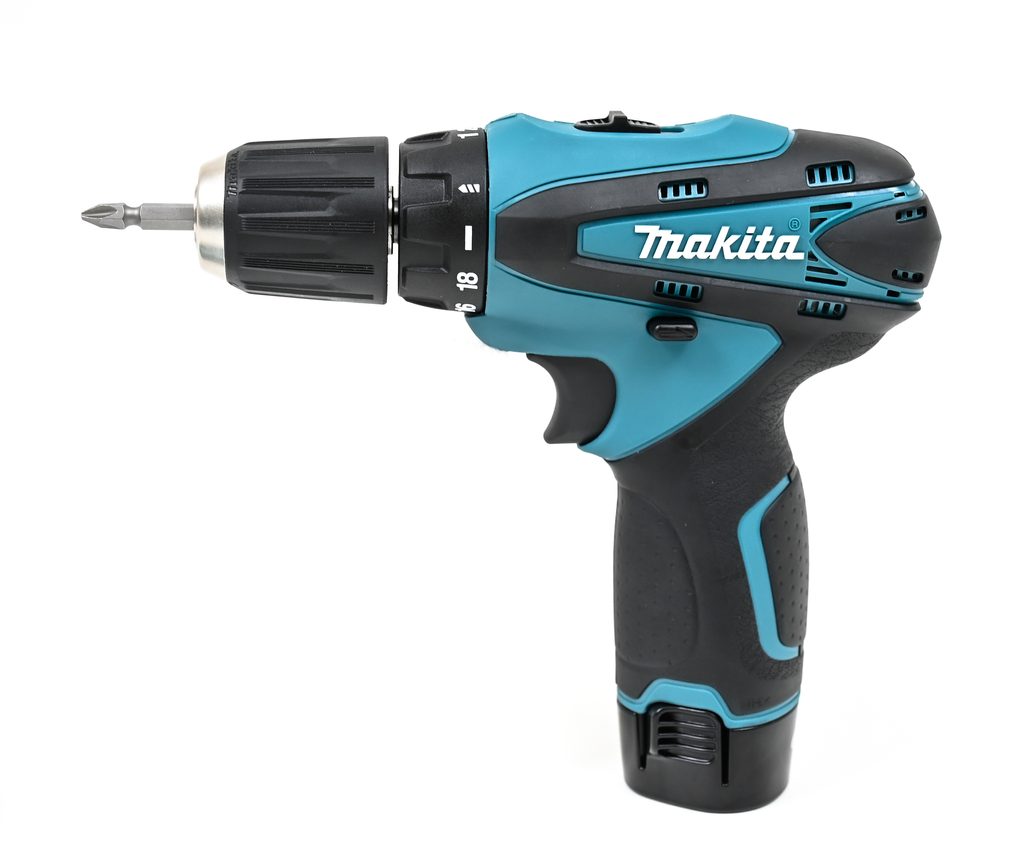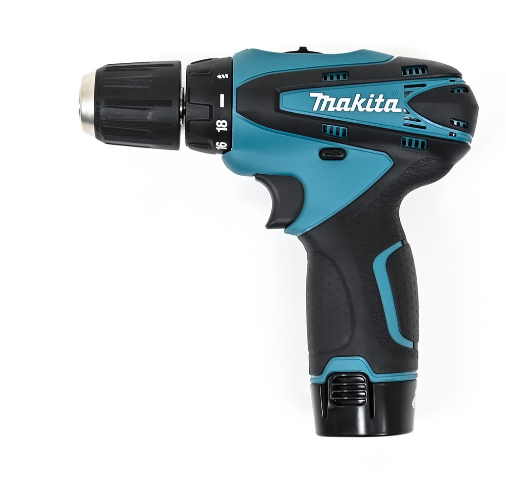 Aku skrutkovač 2x1,3Ah 10,8V Makita DF330DWE s vŕtaním + uťahovaním s možnosťou nastavenia v 16 stupňoch a LED osvetlením pracovnej plochy.