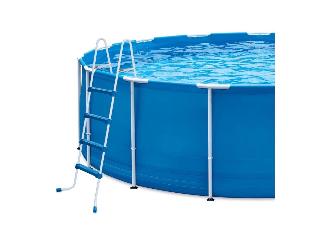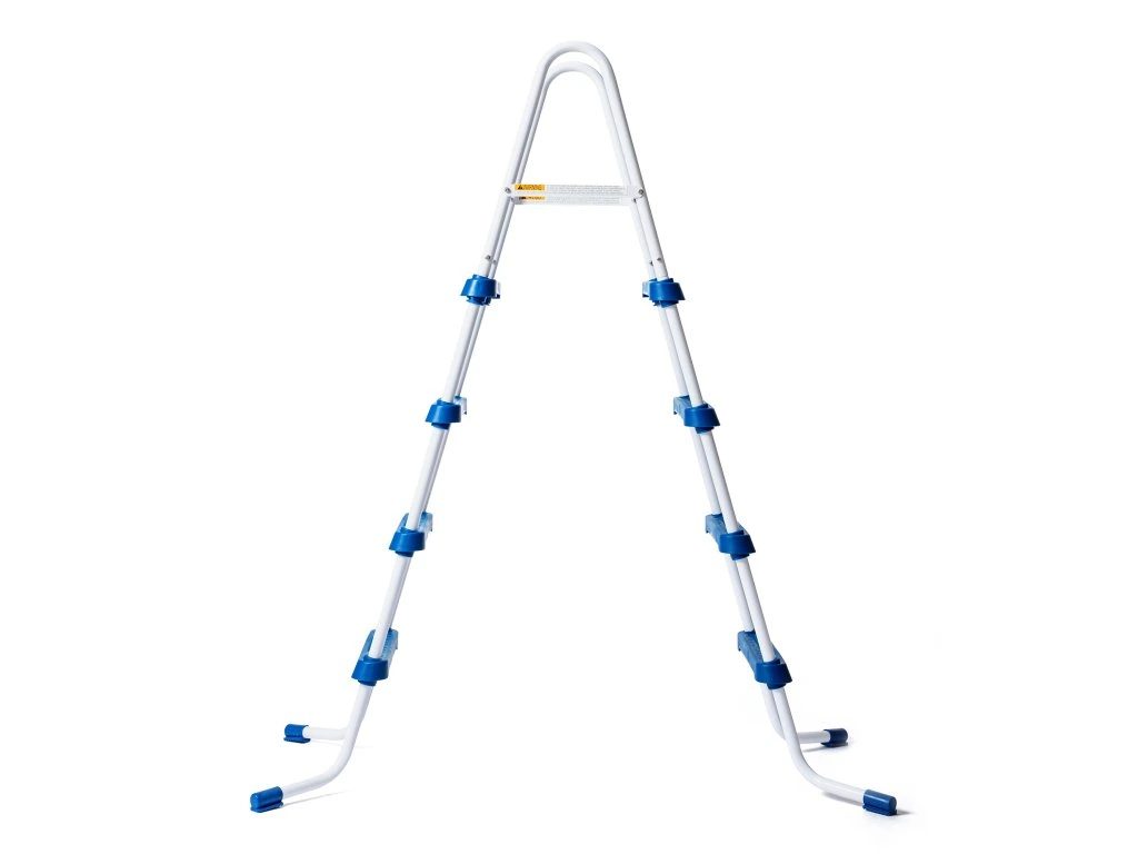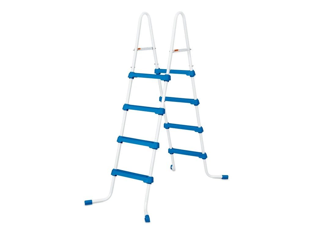 Bazénové schodíky 122 cm pre nadzemné bazény majú kovový rám a plastové stupne s bezpečnostným protišmykovým povrchom. Vysokou nosnosťou až 150 kg. Sú vyrobené z vysoko kvalitných oceľových rúrok s lakovanou povrchovou úpravou, vyznačujú sa preto veľmi dlhou životnosťou. Vďaka ľahkej konštrukcii pohodlne vložíte či vyberiete z bazéna.