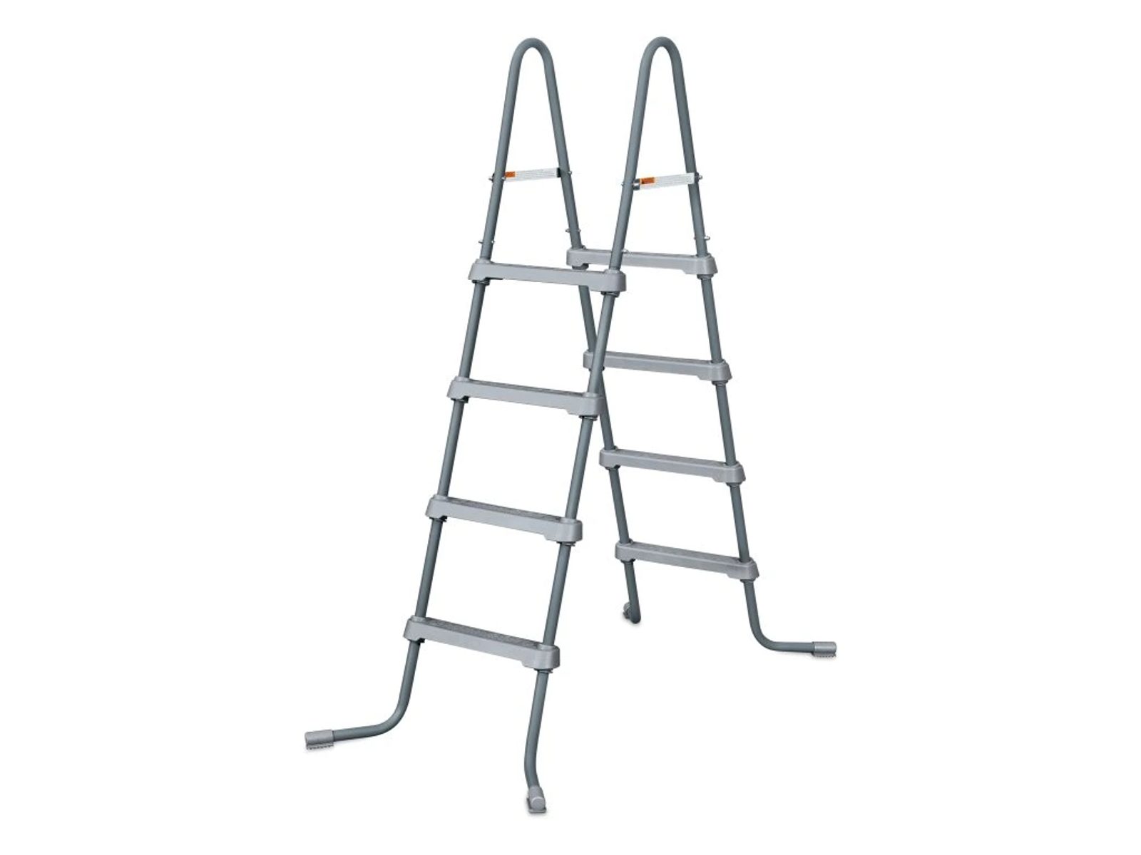 Bazénové schodíky 132 cm pre nadzemné bazény majú kovový rám a plastové stupne s bezpečnostným protišmykovým povrchom. Vysokou nosnosťou až 150 kg. Sú vyrobené z vysoko kvalitných oceľových rúrok s lakovanou povrchovou úpravou, vyznačujú sa preto veľmi dlhou životnosťou. Vďaka ľahkej konštrukcii ich pohodlne vložíte či vyberiete z bazéna.