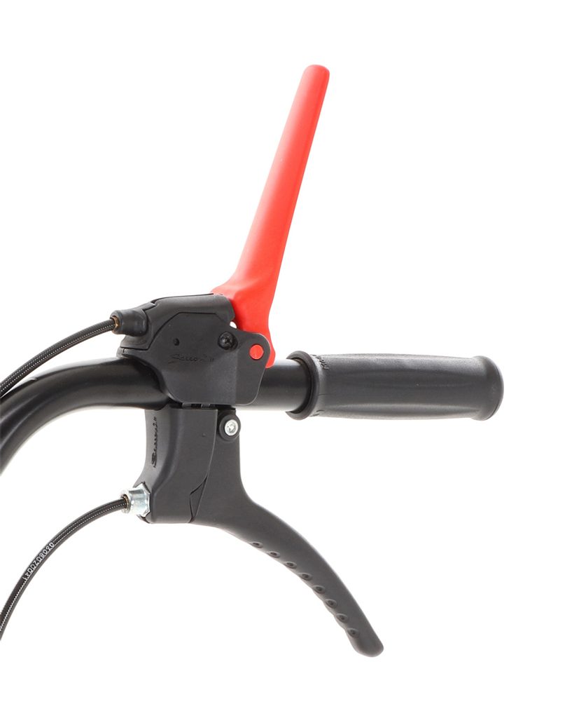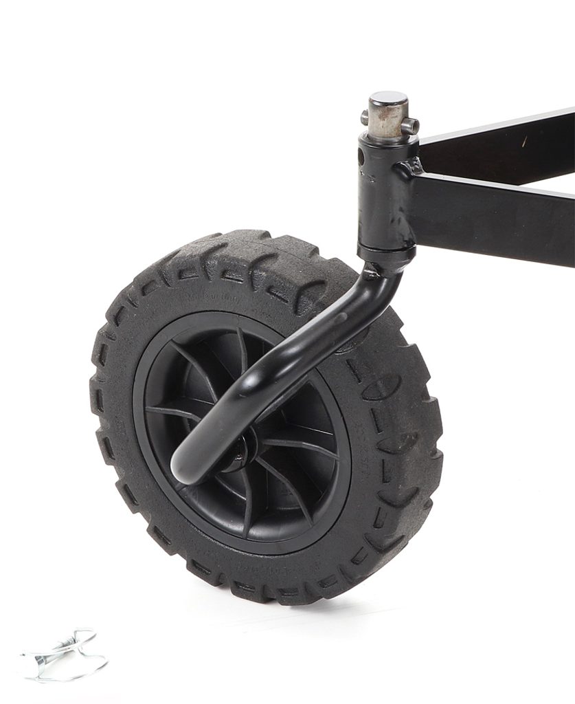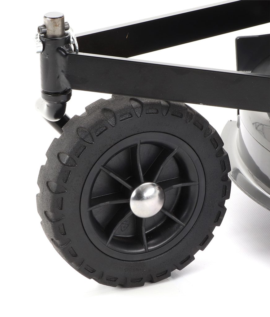 S mimoriadne veľkými zadnými kolesami s funkciou diferenciálu. Centrálne nastavenie výšky je umiestnené na riadidlách obsluhy.