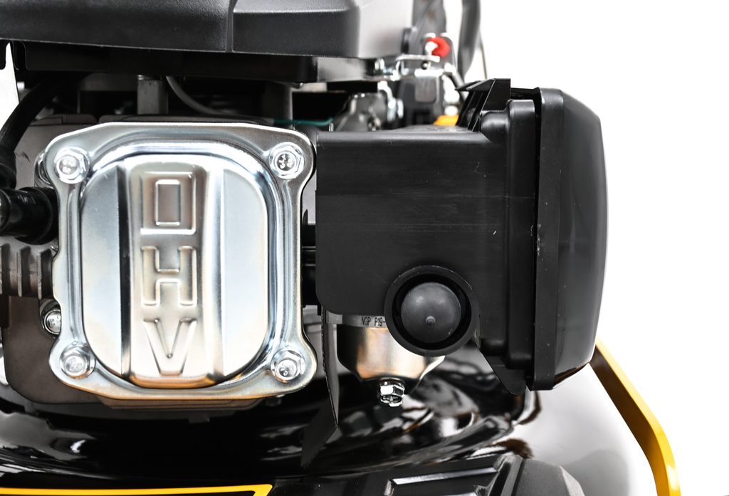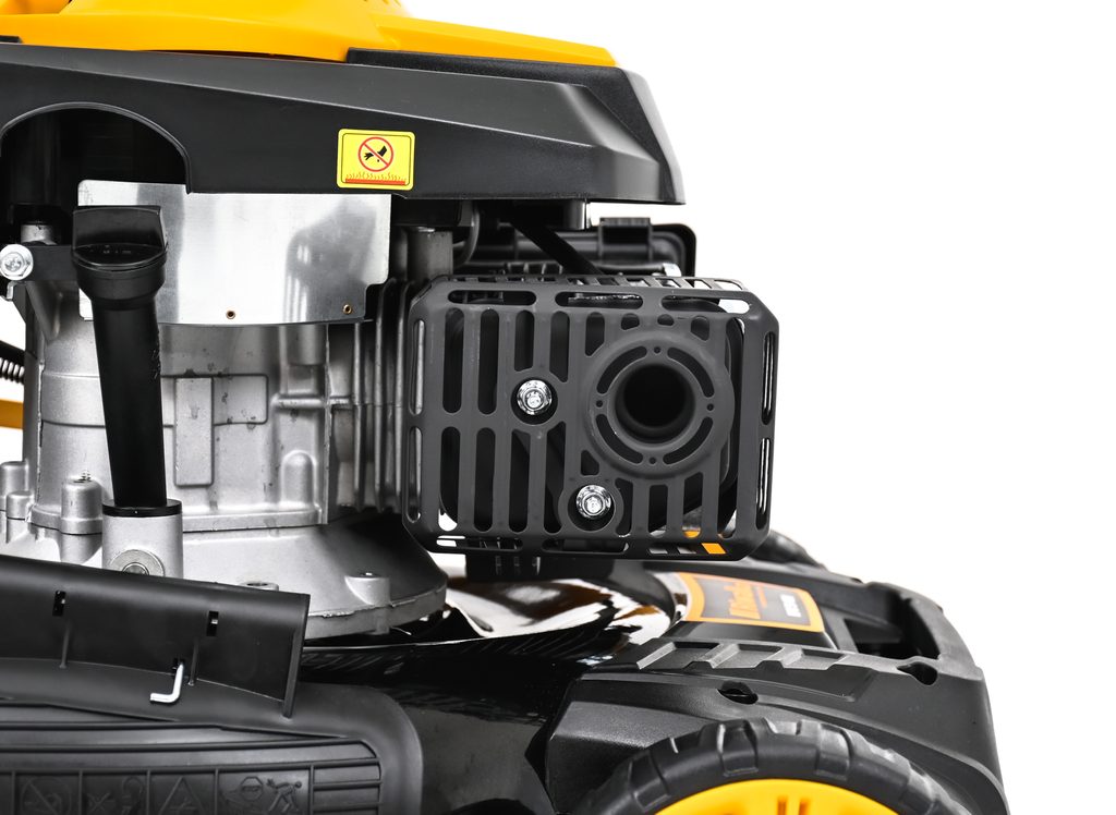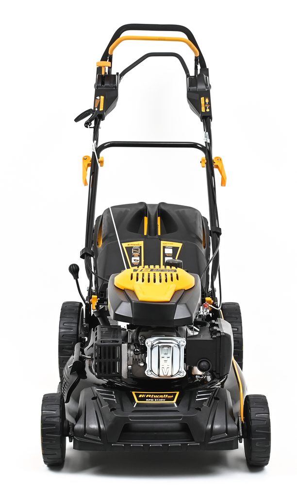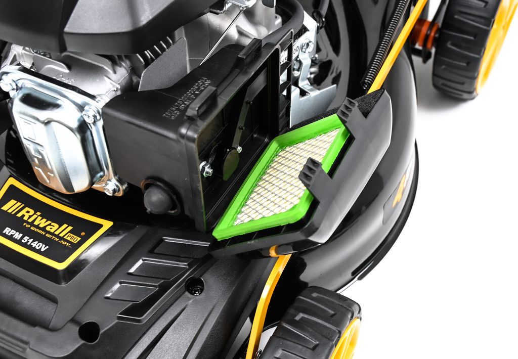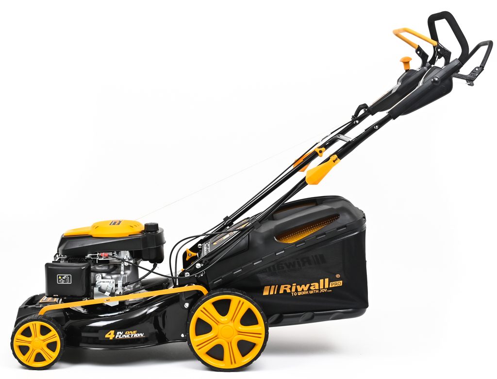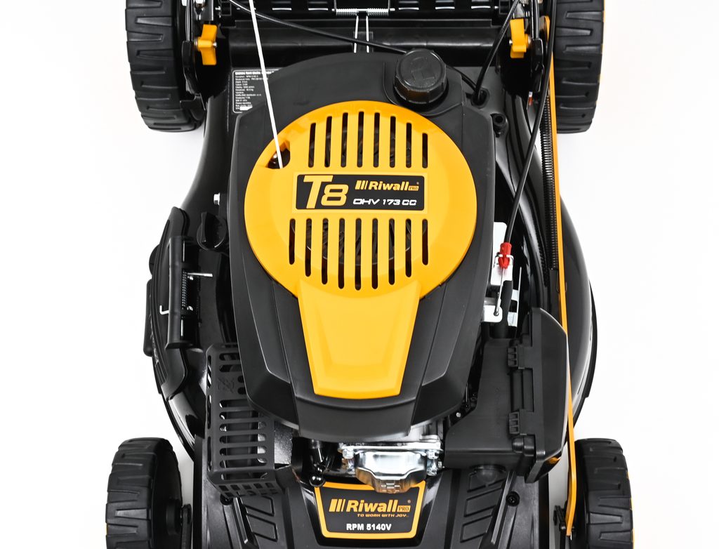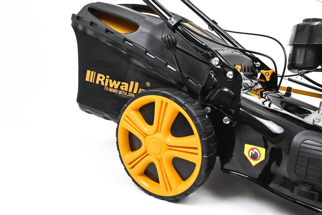 Veľmi silný a tichý motor s objemom 173 cm3 so systémom OHV a jednoduchým štartovaním. Nízka spotreba a Vysoký krútiaci moment je ideálny na prácu v hustej tráve. Pri kosačke je možné zvoliť jednu zo 4 rýchlostí pojazdu a dokonale tak prispôsobiť kosačku Riwall podmienkam kosenia (suchá tráva, mokrá tráva, prerastená tráva, nízka tráva, mulčovanie a pod.). trávy a kosenie aj tesne pri obrubníkoch.