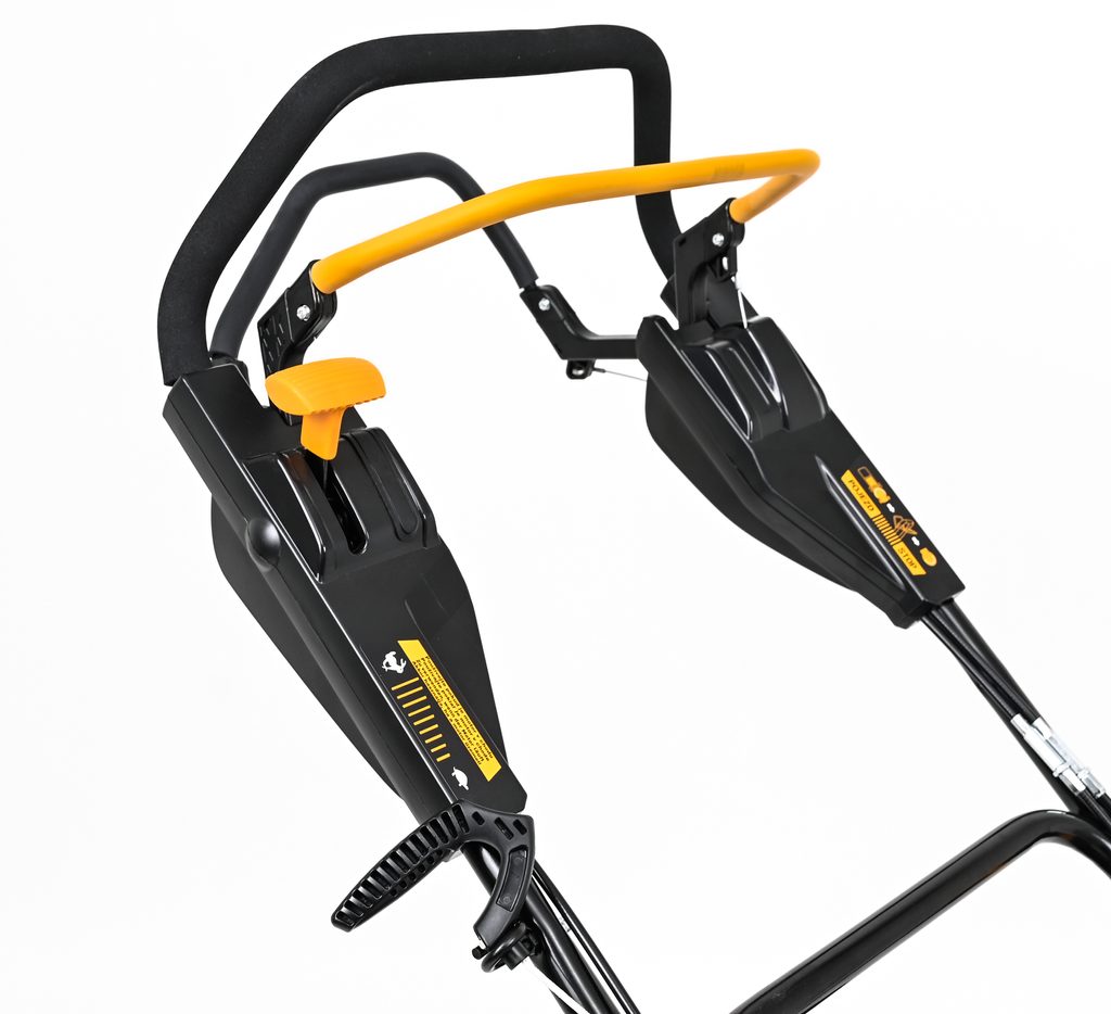 | Funkce | Centrální nastavení výšky , Mulčování , Boční výhoz , Edge cutting , Kuličková ložiska , Primer , Nastavení výšky rukojeti , Manuální start , Nastavitelná rychlost pojezdu |