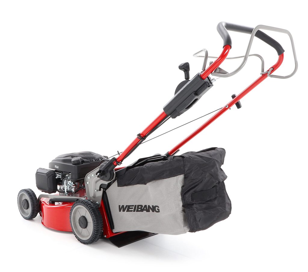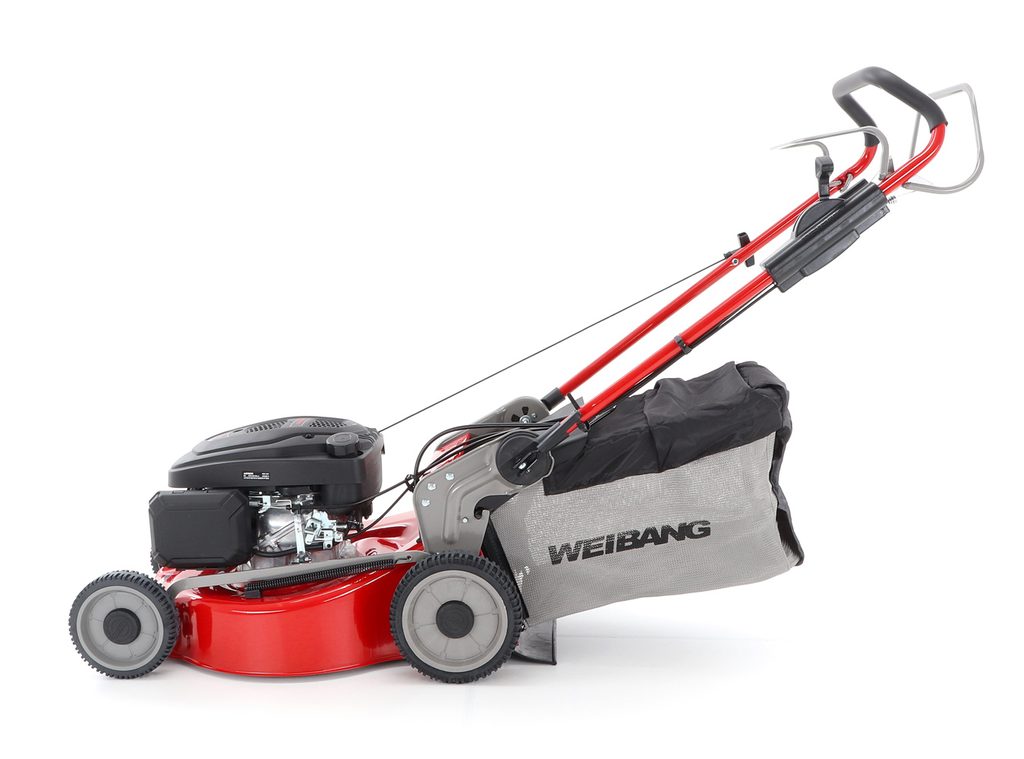 Novinkou kosačky je funkcia tzv. "CHYTRÉ čistenie, servisovanie otočiť a postaviť na zadné špeciálne pätky šasi, týmto sa ľahko dostanete na spodnú časť žacieho ústrojenstva, uloženie náprav a prevodovku. Pri splnení podmienok výrobcu sa na kosačky na trávu Weibang poskytuje predĺžená záruka 4 roky. komaxitový nástrek s leštenou smooth hardness úpravou (3 vrstvy nástreku) Motor: WEIBANG 6 HP, model 1P65FE-2 OHV 9,5 Nm - 166 ccm Pojazd: variabilný daný motor. - ak potrebujete znížiť rýchlosť pojazdu, znížite súčasne otáčky motora - nôž sa točí pomalšie. systém