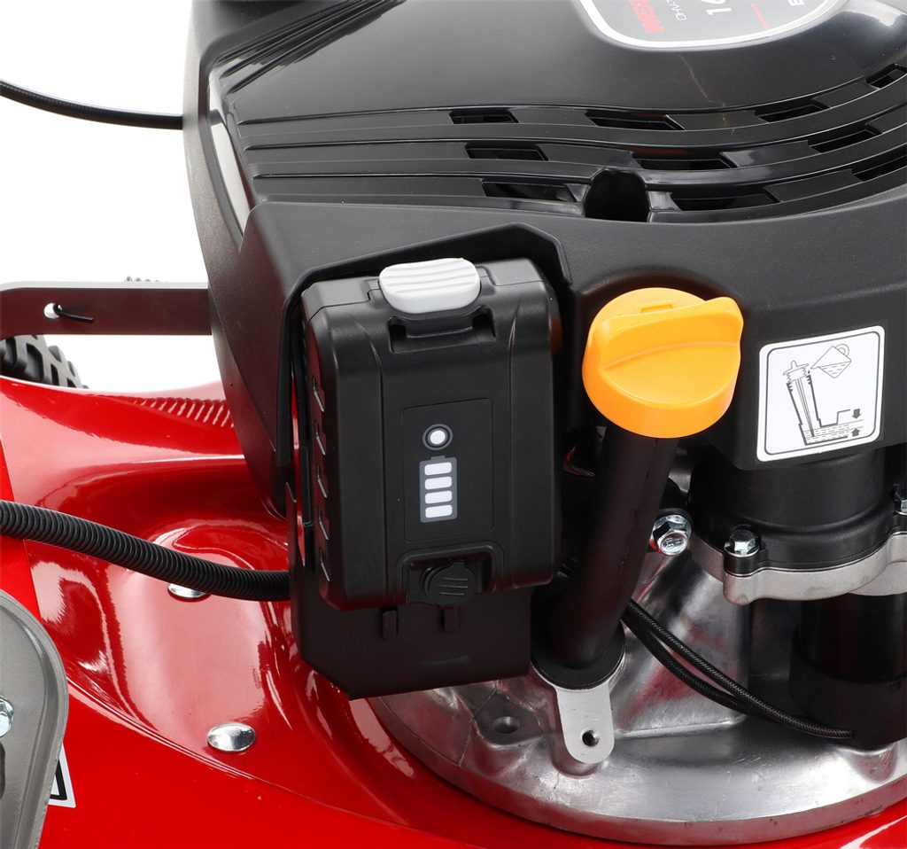 | Funkce | Centrální nastavení výšky , Mulčování , Boční výhoz , Elektrický start , Kuličková ložiska , Antivibrační systém , Nastavení výšky rukojeti , Manuální start , Nastavitelná rychlost pojezdu , Ovládací panel na rukojeti |