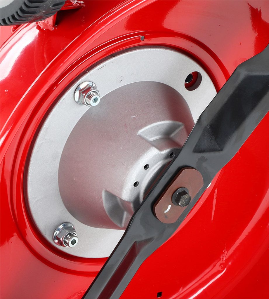 Výhoda silného motora s výkonom 6 HP a špeciálne tvarovaného silného mulčovacieho noža Vám perfektne pokosí nízku aj stred. Pogumované sendvičové kolesá sú uložené v obojstranných guličkových ložiskách, centrálne nastavenie výšky kosenia je u tejto značky samozrejmosťou.