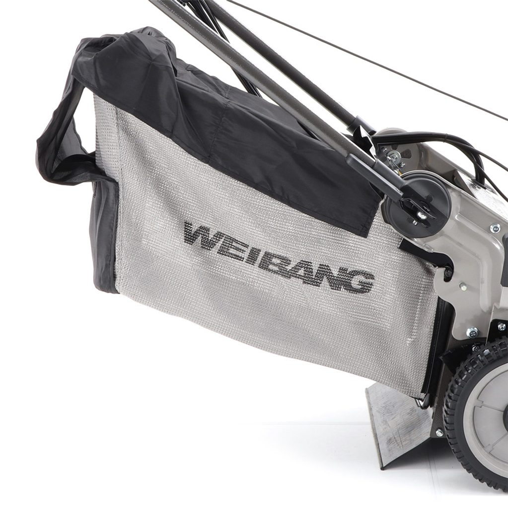 Ďalej je táto kosačka vybavená pevnými zadnými kolesami a sklopnou rukoväťou Masívny žací nôž s mohutnými vyhadzovacími "lopatami - tzv. BIG BLADE" a veľký kôš spolu so zaujímavou cenou robia z tejto kosačky WEIBANG kvalitného pomocníka s bojom proti zelenému živlu v bežnom aj profesionálnom ťažkom nasadení. Ide o profesionálny silný motor rozvodu OHV s výkonom 7 HP a vysokým krútiacim momentom.