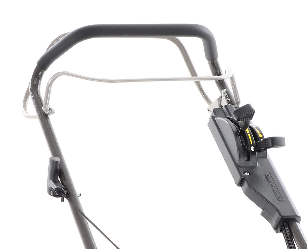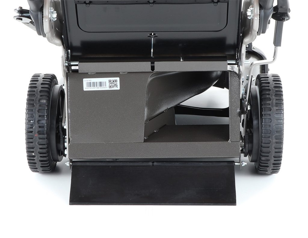 | Funkce | Centrální nastavení výšky , Kuličková ložiska , Antivibrační systém , Nastavení výšky rukojeti , Manuální start , Nastavitelná rychlost pojezdu , Ovládání otáček motoru , Ukazatel plnosti koše |