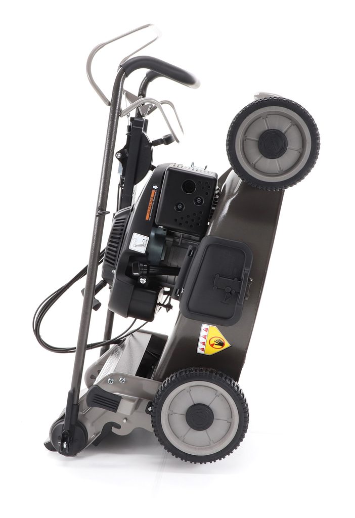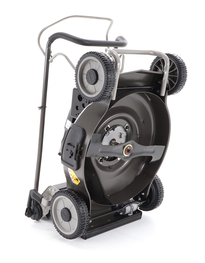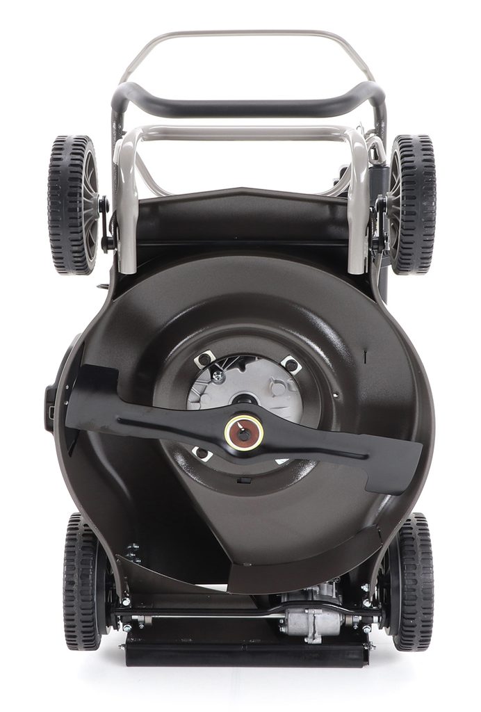 Novinkou sekačky je funkce tzv. "CHYTRÉ ŘEŠENÍ", sekačku lze pro lepší uskladnění, snadné čistenie, servisování otočit a postavit na zadní speciální patky šasi, tímto se snadno dostanete na spodní část žacího ústrojí, uložení náprav a převodovku.