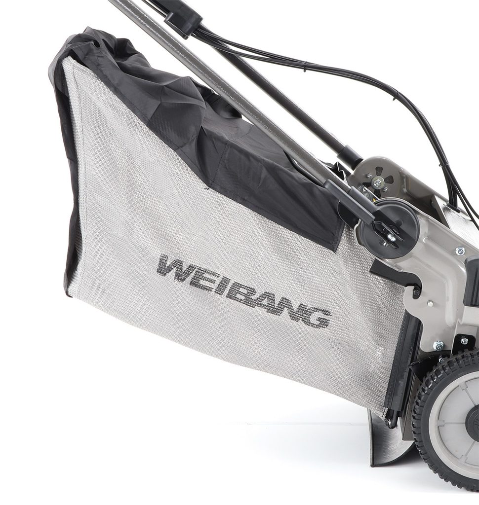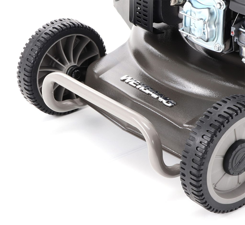 Výhodou je silný motor WEIBANG so super výkonom 7 HP a vysokým krútiacim momentom 10,5 Nm. Nôž s veľkými lopatami Vám perfektne zoberie aj prerastenú mokrú trávu. Pogumované sendvičové kolesá sú uložené v obojstranných guličkových ložiskách, centrálne nastavenie výšky kosenia je u tejto značky samozrejmosťou.