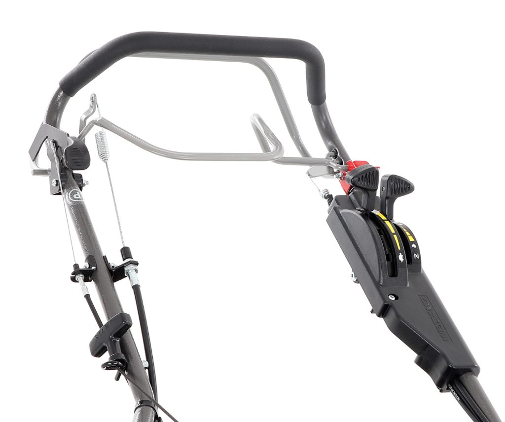| Funkce | Mulčování , Boční výhoz , Kuličková ložiska , Manuální start , Nastavitelná rychlost pojezdu , Ovládání otáček motoru , Ukazatel plnosti koše , Ovládací panel na rukojeti |