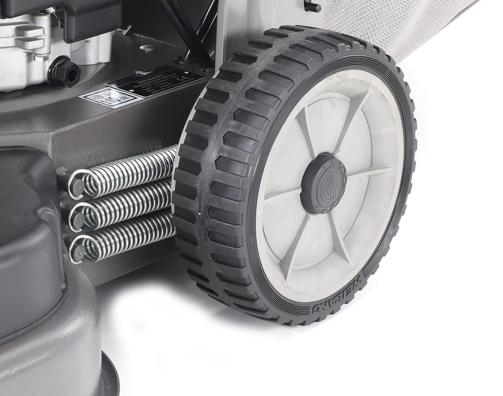 Konštrukcia kosačky je vyrobená z kvalitnej ocele, ktorá poskytuje vysokú odolnosť. Masívny predný nárazník chráni stroj pred poškodením pri nárazoch. Špeciálna povrchová úprava HAMMER EFFECT, aplikovaná v troch vrstvách, zaručuje vysokú odolnosť a trvanlivosť náteru.