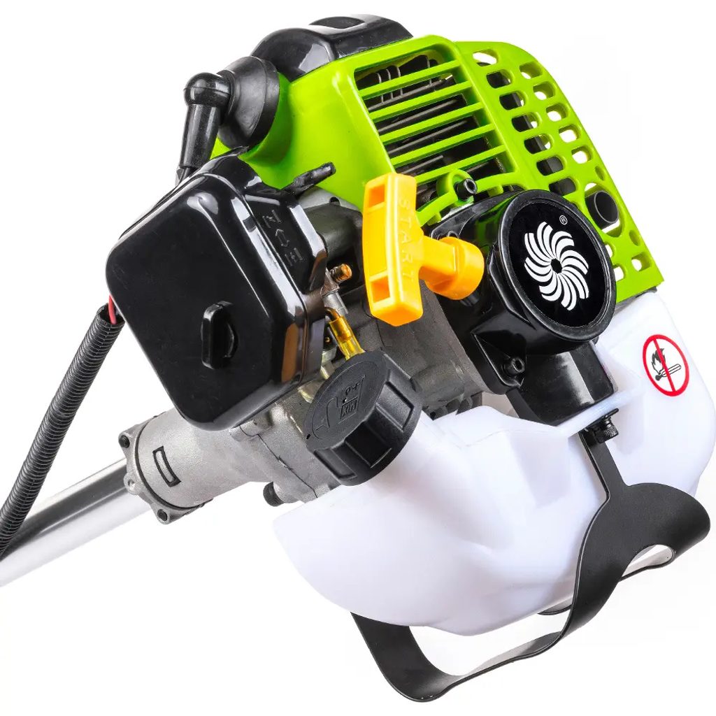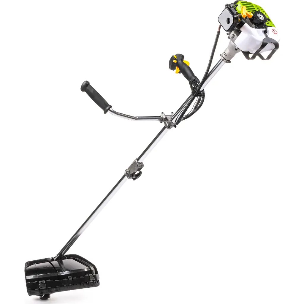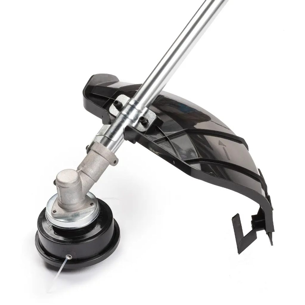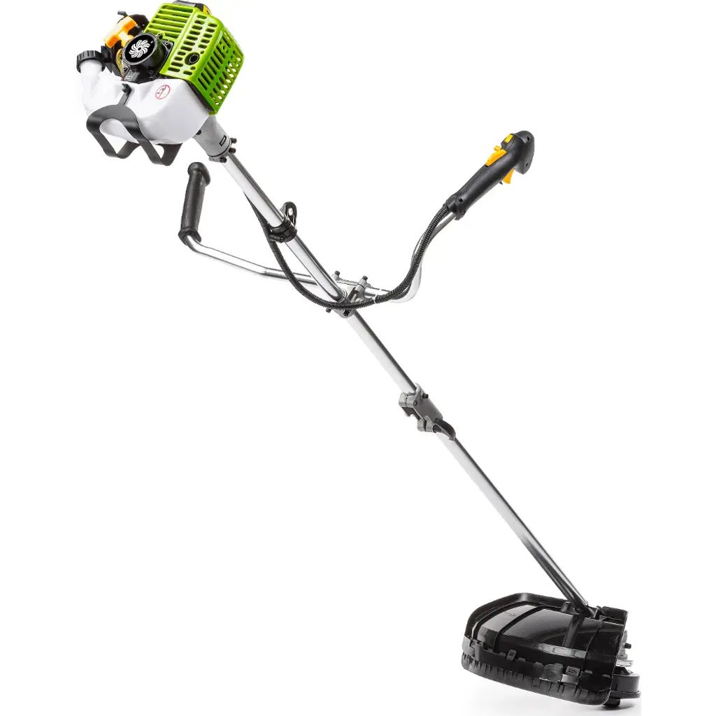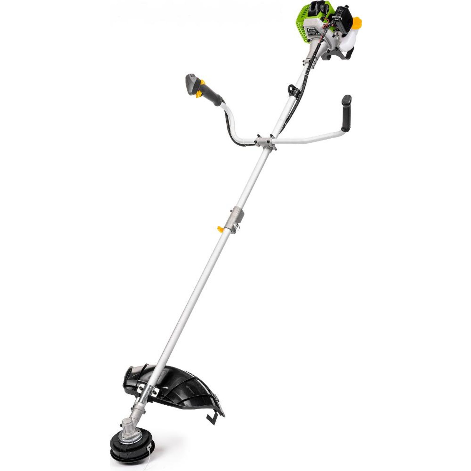 Na pohodlné používanie ponúka nastaviteľný ramenný popruh a široký úchop oboma rukami. Krovinorez je vybavený poloautomatickou strunovou vyžínacou hlavou s dvoma strunami, ktoré sa automaticky posúvajú.