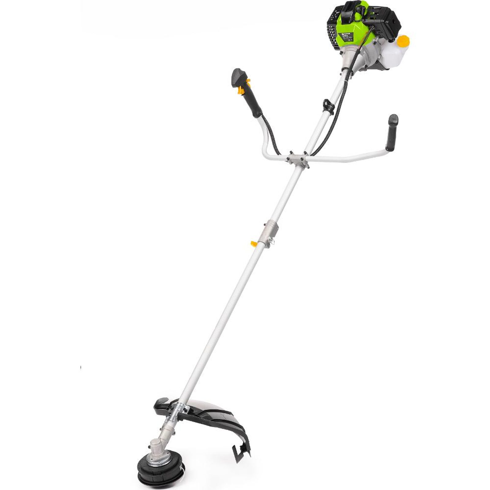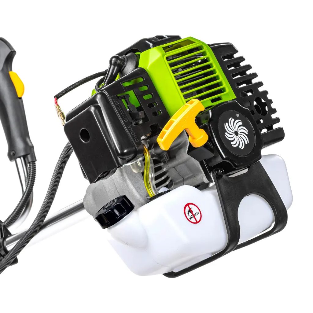 Súčasťou výbavy je poloautomatická strunová hlava s dvoma strunami s priemerom 2,4 mm, ktorá uľahčuje obsluhu vďaka jednoduchému vysunutiu struny ľahkým úderom o zem. Na náročnejšie použitie je k dispozícii aj odolný trojzubý oceľový kotúč, ktorý je vhodný na tvrdšie rastliny a náletové dreviny.