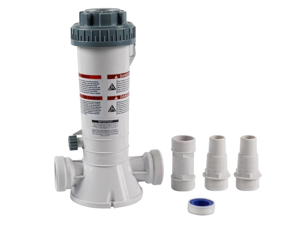 Automatický dávkovač chlóru je ideálna voľba pre váš bazén alebo vírivku. Navrhnutý na jednoduchú inštaláciu do spätnej trubky, používa pomaly sa rozpúšťajúci Trichloro-S-Triazinetrione (Tri-Chlor) v podobe veľkých alebo malých tabliet, alebo tyčiniek. Pre maximálnu bezpečnosť a efektivitu odporúčame používať iba tento typ chemikálie.