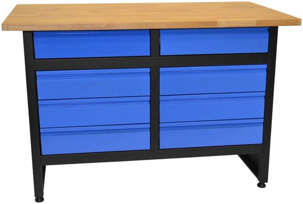 Pracovný stôl, určený na použitie v domácich alebo údržbárskych dielňach, montážnych prevádzkach a pod. Pracovná deska (x0) x 30 mm; škárovka z kaučukovníkového dreva, z legálnej ťažby v ekologicky obhospodarovaných lesoch, so zrazenými hranami, povrchová úprava roztokom ľanovej fermeže s prísadami.