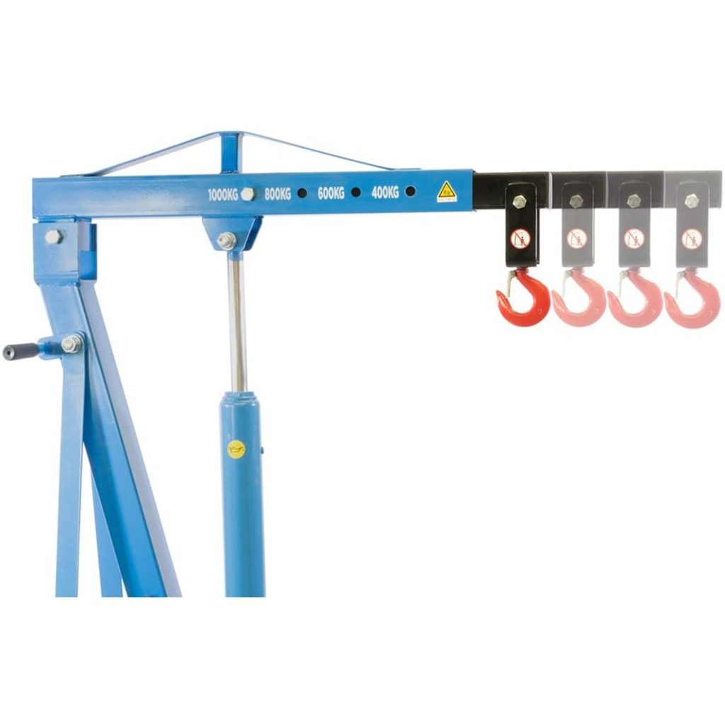 Tento ručný žeriav bol navrhnutý pre bezpečné a efektívne zdvíhanie bremien s hmotnosťou až 1000 kg, pričom vyniká svojou výkonnosťou, flexibilitou a spoľahlivosťou. Vďaka nastaviteľným nástavcom je ľahko prispôsobiteľný rôznym veľkostiam a tvarom bremien, čo zvyšuje jeho všestrannosť. Maximálna výška zdvihu dosahuje 216 cm, čo umožňuje manipuláciu aj vo väčších výškach. značne uľahčuje jeho skladovanie aj prepravu.