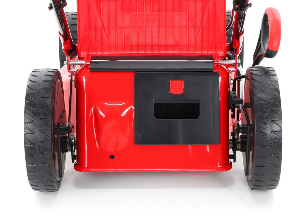| Funkce | Centrální nastavení výšky , Mulčování , Boční výhoz , Kuličková ložiska , Ukazatel plnosti koše |