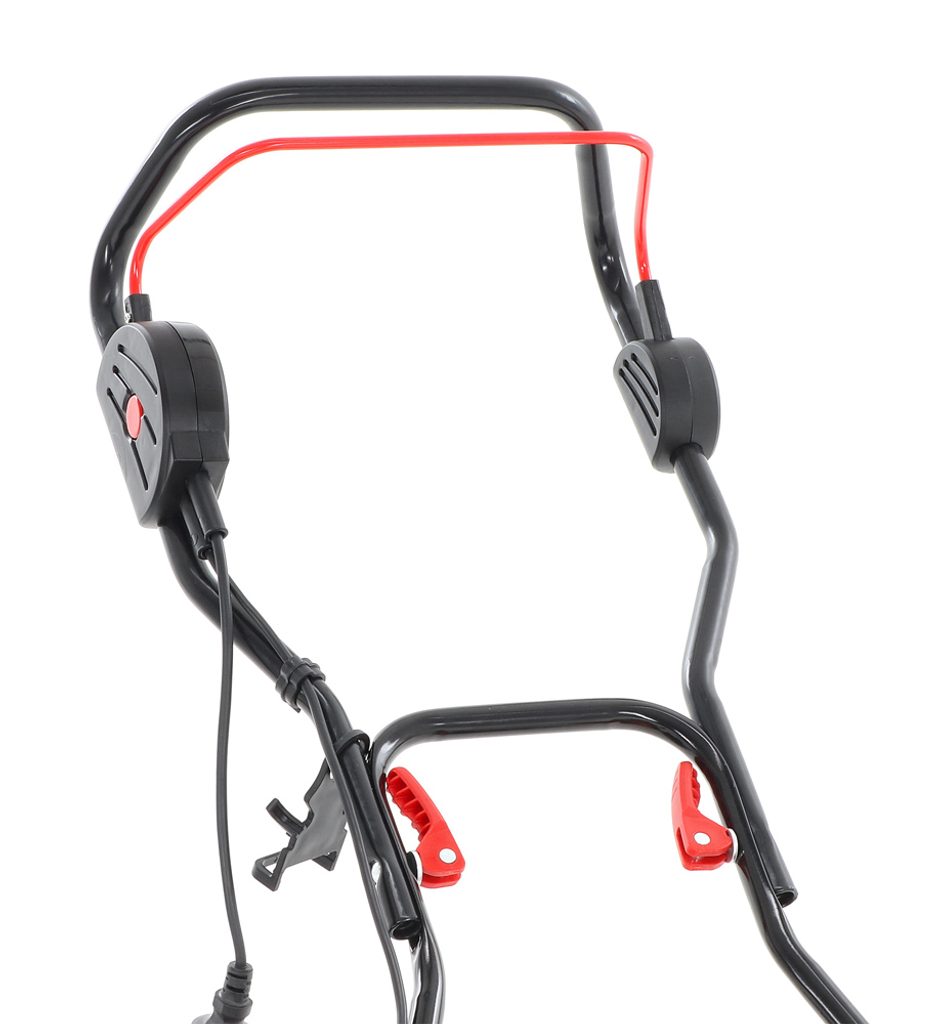 Kosačka má ergonomicky tvarované riadidlá, ktoré sú zložiteľné pre ľahký transport. Má centrálne nastavenie výšky kosenia do 11 pozícií a veľký plastový kôš s pohodlným madlom s objemom 50 l.