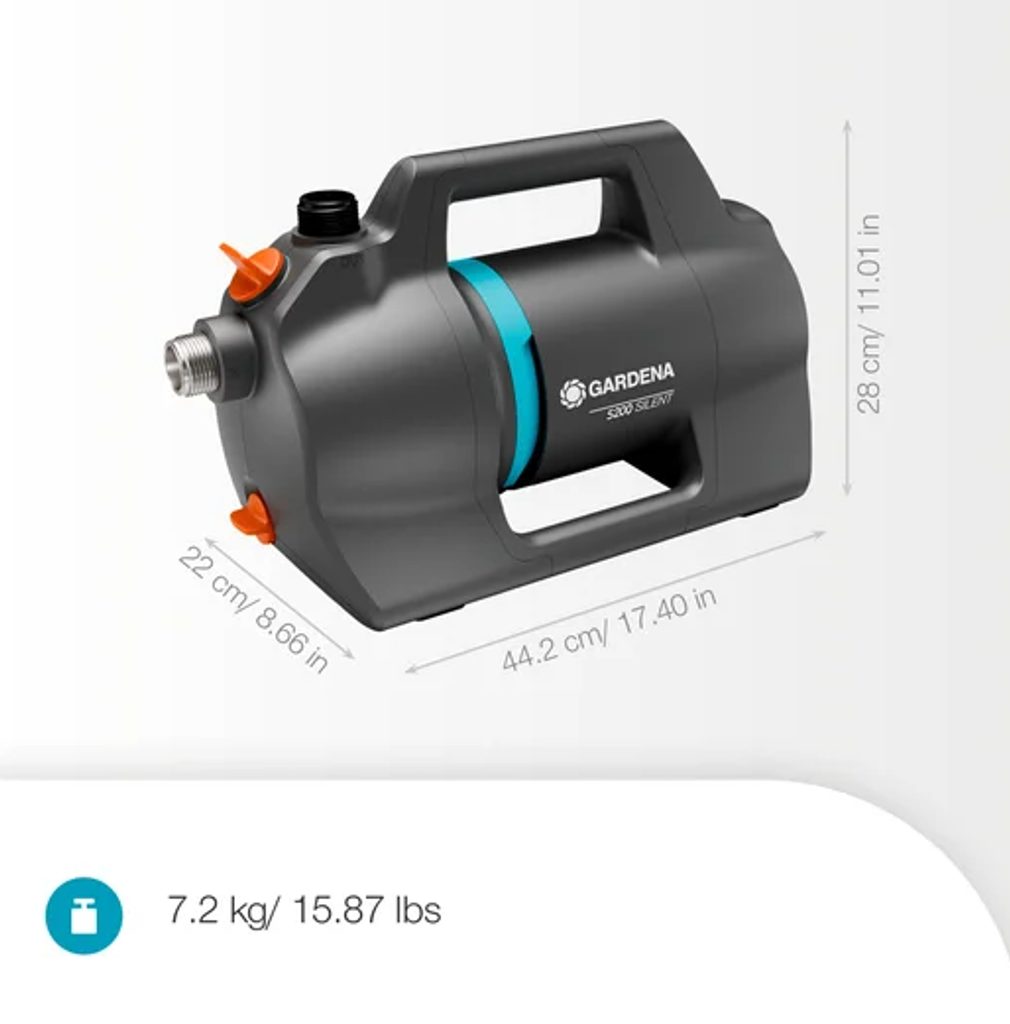 Elektrické povrchové čerpadlo Gardena 5200 Silent je zavlažovacie čerpadlo s vysokým výkonom na pohodlné čerpanie vody v záhrade. Zvládne prietok až 5200 l/h a vytvára tlak 3,9 baru, pričom vďaka vylepšenej hydraulickej konštrukcii dosahuje až o 26 % vyšší prietok než predchádzajúci model v tomto rade.