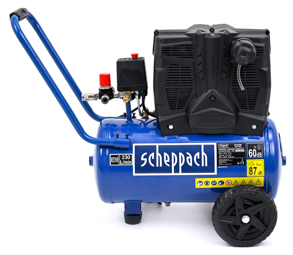 Kompresor Scheppach HC 25 Si je tichý bezolejový dvojvalcový kompresor, ktorý je vhodný aj do miest a prevádzok s vysokými požiadavkami na . Hladina hluku je zhruba na úrovni bublania varnej kanvice, takže v praxi budete vnímať hluk tohto kompresora iba minimálne.