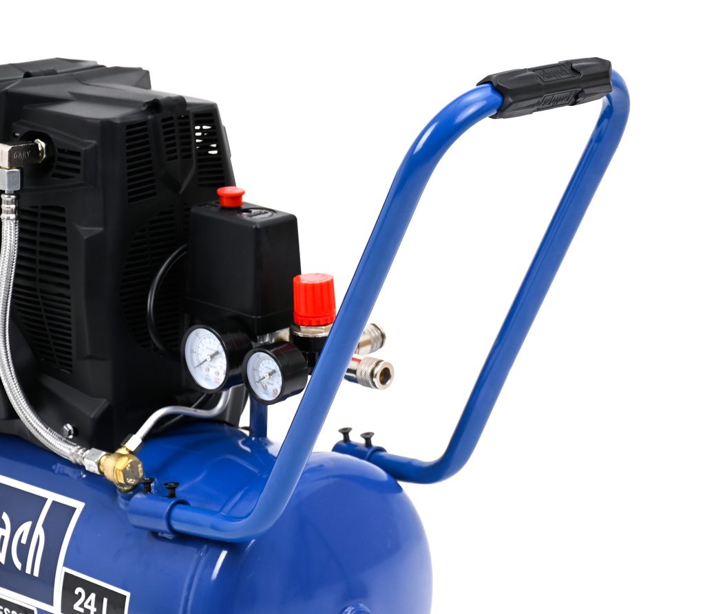 Kompresor je vybavený manometrom vzdušníka aj manometrom na kontrolu pracovného tlaku. Prídavné madlo a kolieska umožnia jednoduchú manipuláciu so strojom, antivibračný podstavec zase zaistí pokojný chod stroja. x 56,5 x 24 cm
