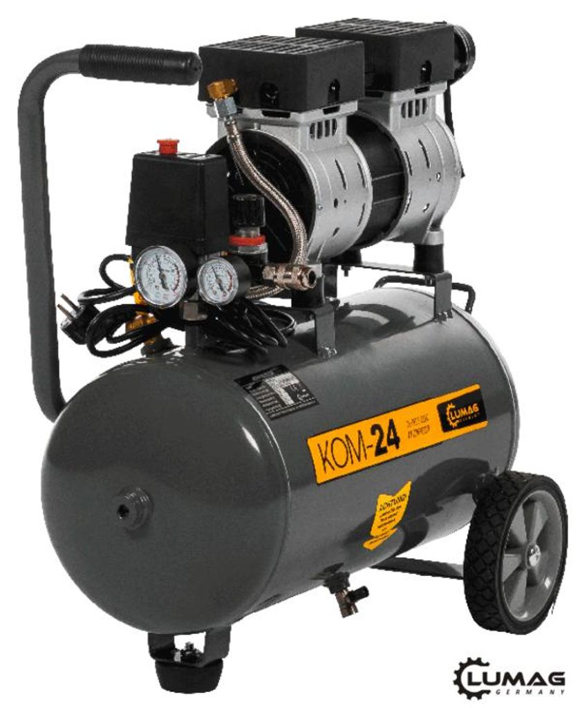 Bezolejový kompresor LUMAG KOM24 využijete všade tam, kde nie je žiaduci únik oleja do vzdušníka a ďalej. Využijete ho v potravinárstve, v lakýrňach atď. Tento kompresor je tiež vhodný pre airbrush striekanie. Vďaka špeciálne vyvinutému materiálu trecích plôch je životnosť piestových kompresorov LUMAG úplne porovnateľná s olejovými kompresormi.