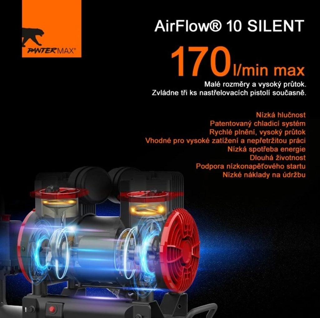 Elektrický bezolejový kompresor PANTERMAX® AirFlow® 10 SILENT