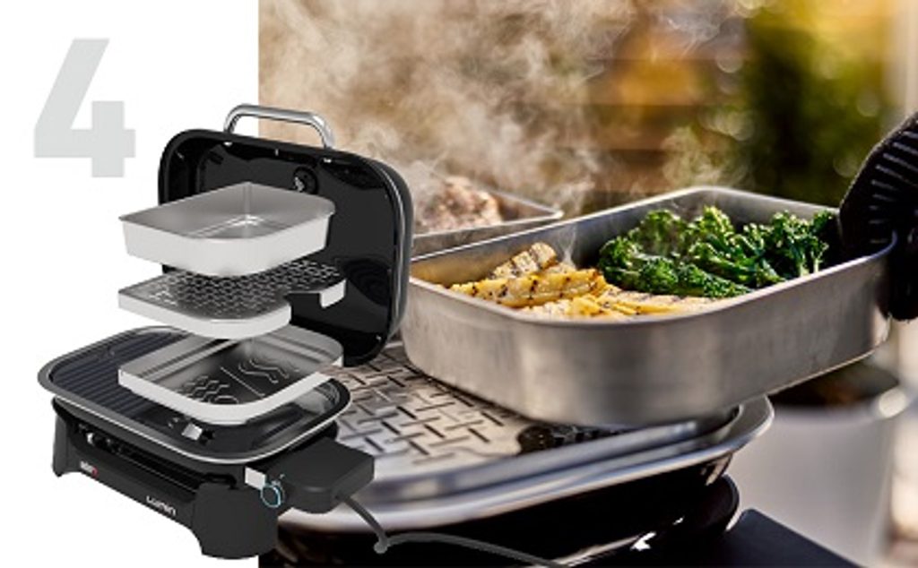 Objavte kulinársku všestrannosť tohto dynamického elektrického grilu. Pokrm opečte, úďte, poduste v pare alebo uvarte vďaka rôznym spôsobom grilovania a vstúpte do sveta plného úžasných možností.