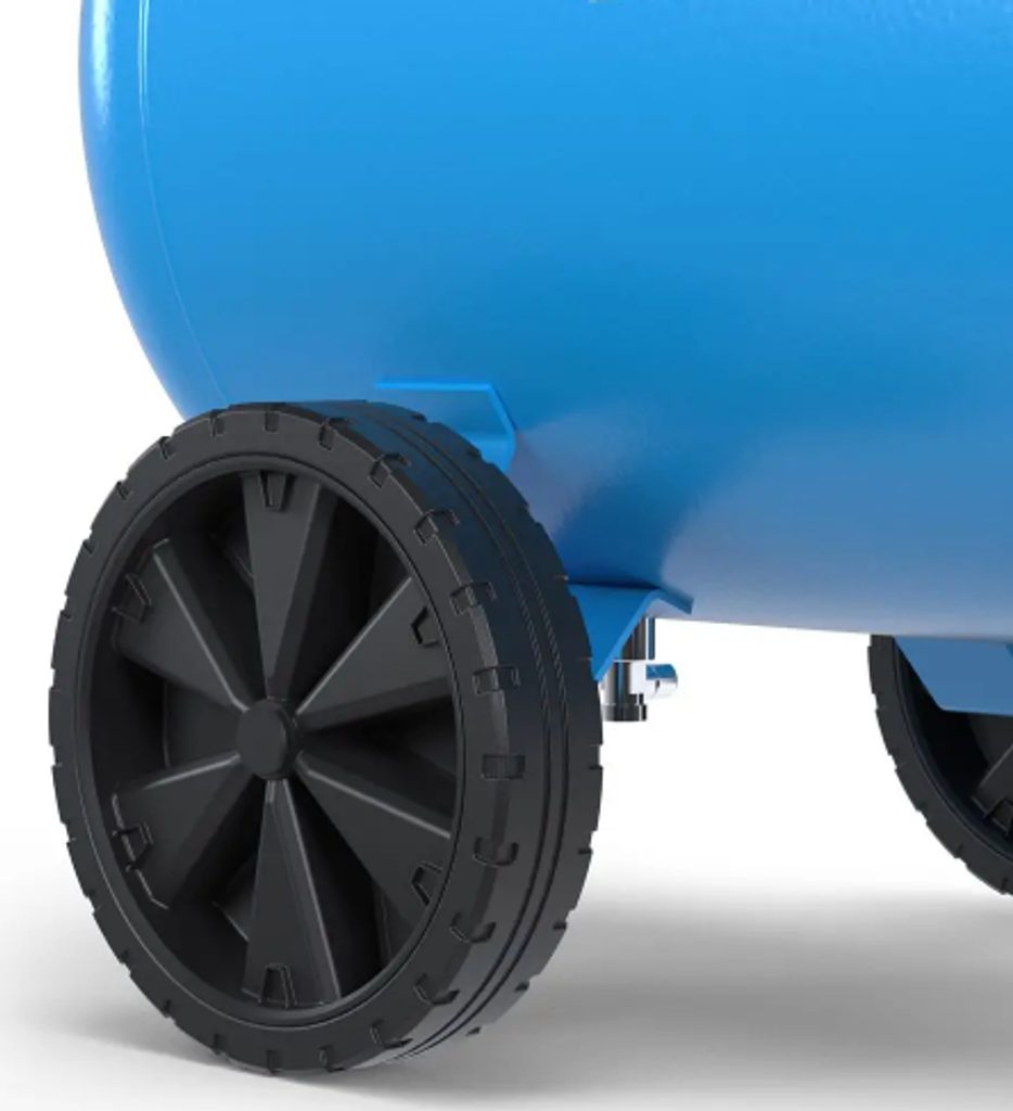 Pre ľahkú manipuláciu je kompresor vybavený transportnou rukoväťou a robustnými plastovými kolieskami kolieskami.