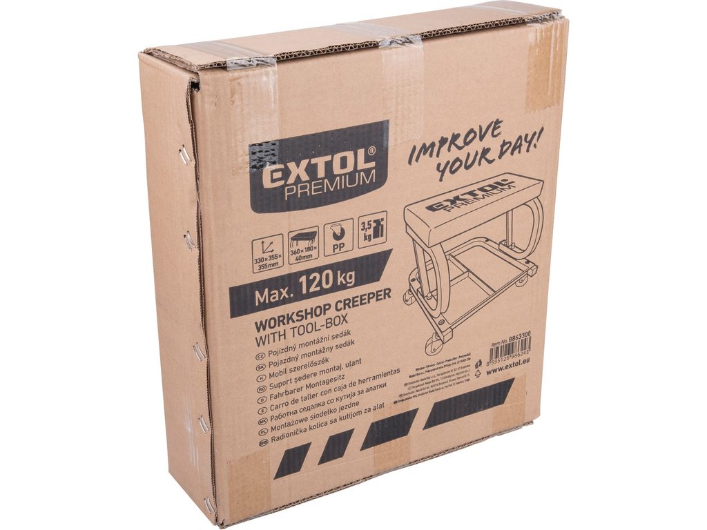Robustný montážny pojazdný sedák EXTOL PREMIUM s nosnosťou 120 kg uľahčí prácu v nízkej výške. Má extra vystužený sedák pre pohodlie a stabilitu, štyri otočné kolieska z polypropylénu pre plynulý pohyb a praktický spodný úložný priestor na drobné náradie a príslušenstvo.