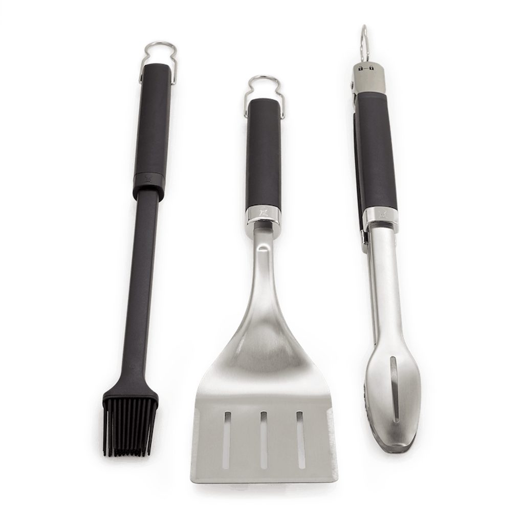 Obracejte hamburgery, zeleninu alebo glazujte rebrá ďalšou príchuťou. Obracačka so skoseným okrajom na troch hranách, hands-free uzamykateľné kliešte a veľký štetec so silikónovými štetinami v sete. S 3 kusmi grilovacieho náčinia Precision sú Vaše každodenné grilovacie potreby v jednej sade. Všetky náčinie obsahuje mäkkú rukoväť pre pohodlné a bezpečné uchopenie.
