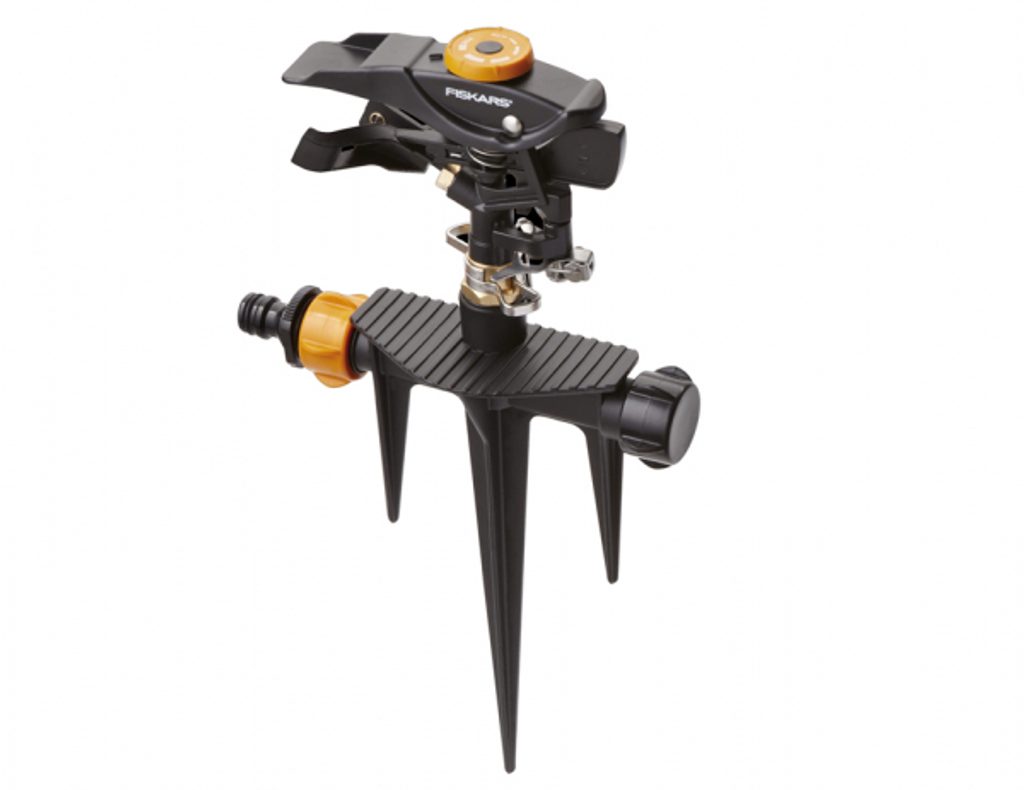 Zavlažovač pulzný Fiskars je vysoko odolný kovový postrekovač, ktorý ponúka jednoduché ovládanie pre nastavenie vzdialenosti závlahy, typu rozstreku a kontroly rotácie. Vďaka tomu môžete presne zavlažovať akúkoľvek časť vašej záhrady.