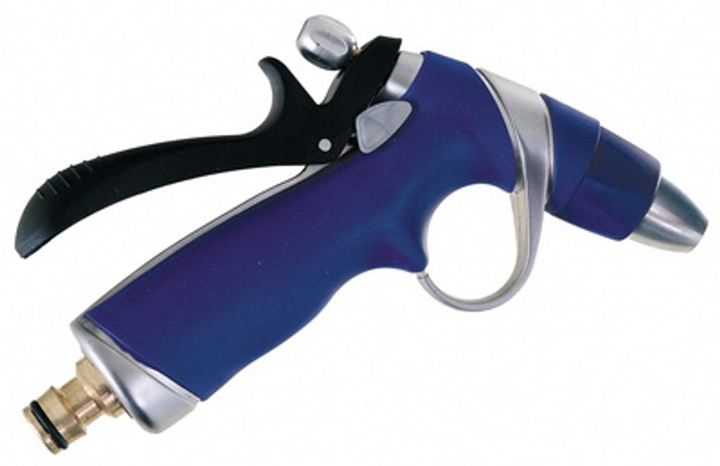 Zavlažovacia pištoľ je robustný postrekovací nástroj vyrobený z kvalitného kovu, ktorý vydrží aj náročnejšie používanie. Umožňuje plynulo nastaviť intenzitu prúdu vody podľa aktuálnych potrieb – od jemného rozprašovania až po silný prúd. Spoľahlivosť pištole zaisťuje tiež odolný mosadzný čap, ktorý prispieva k dlhej životnosti celého výrobku.