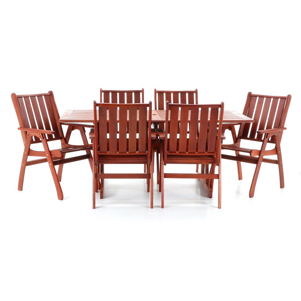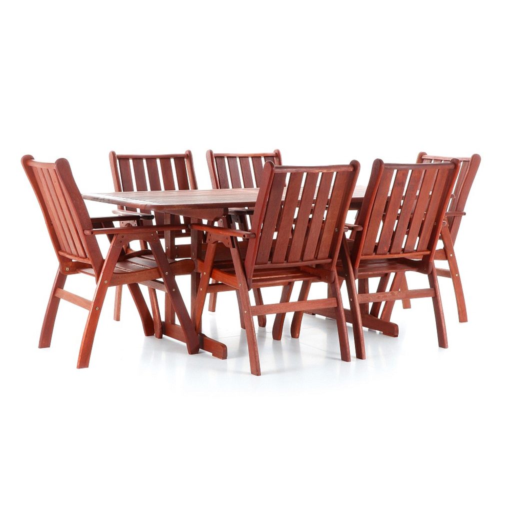 Záhradná zostava Meranti Victoria Set 6 je luxusná masívna stolová zostava, ktorá ponúka pohodlné posedenie pre šesť osôb. Zostava pozostáva zo šiestich kresiel a priestranného stola, pričom každý kus je vyrobený z exotického, mimoriadne trvanlivého a tvrdého dreva Meranti. Tento tropický materiál vyniká nielen svojou dlhou životnosťou, ale aj elegantným vzhľadom a príjemnou kresbou dreva.