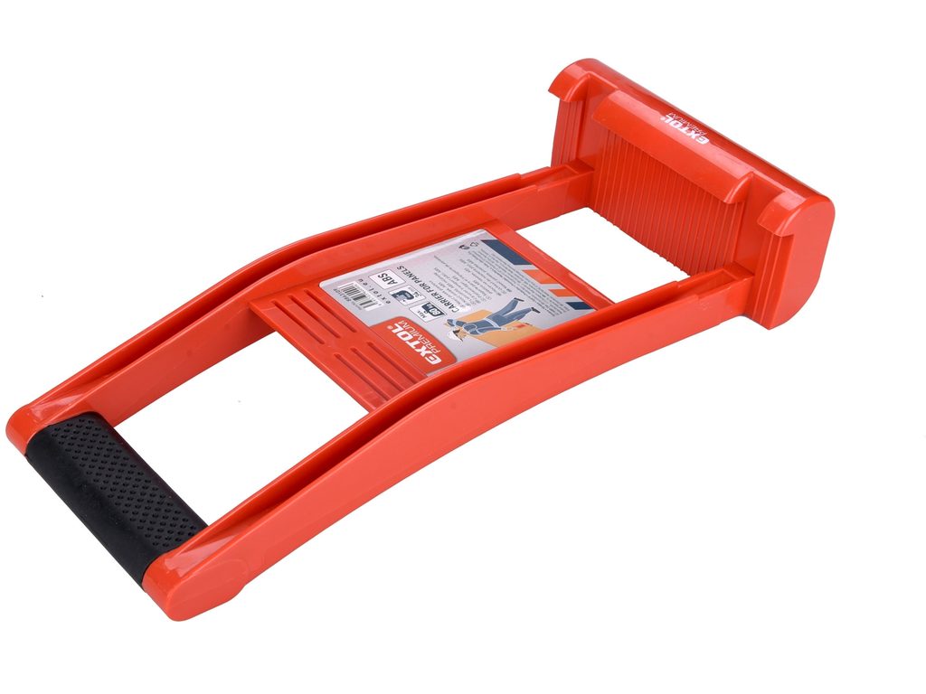 Nosič dosiek EXTOL PREMIUM 8863109 je šikovný pomocník, ktorý výrazne uľahčí manipuláciu s doskovými materiálmi, ako sú sásky preglejky. Vyrobený je z odolného plastu, takže je ľahký, ale zároveň dostatočne pevný, aby zvládol aj vyššiu záťaž.