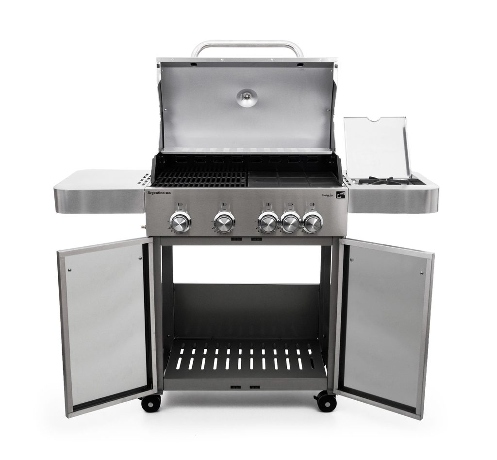 Hľadáte naozaj dobrý záhradný gril s perfektnými vlastnosťami i prevedením? Nerezový plynový gril G21 Argentína so 4 hlavnými a 1 bočným horákom splní všetky vaše očakávania.