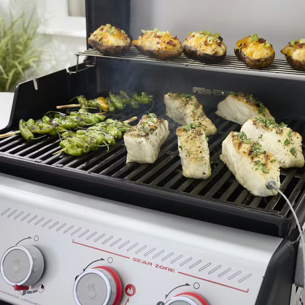 Veľkou prednosťou tohto modelu je digitálny teplomer s pripojením Wi-Fi®, ktorý zobrazuje teplotu grilu aj pripojenej ihly na meranie teploty. V balení nájdete 1 káblovú ihlu na meranie vnútornej teploty jedla, takže už nebudete riešiť, či je mäso vo vnútri hotové. Teplomer spárujete s aplikáciou Weber Connect® a môžete na diaľku sledovať priebeh grilovania – vrátane upozornení v telefóne, kedy je gril rozpálený a kedy je čas jedlo otočiť alebo zložiť.