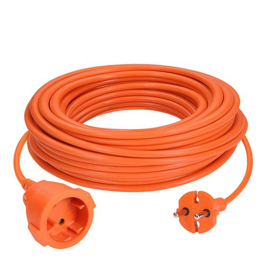 Oranžový predlžovací kábel s dĺžkou 20 metrov a jednou zásuvkou je ideálny na predĺženie elektrickej energie na záhrade alebo v dielni. Vhodný na pripojenie zariadení s dvojpólovou neuzemnenou vidlicou prívodnej šnúry, ktorými je väčšina elektrických nástrojov. Farebné odlíšenie od okolitého prostredia zvyšuje bezpečnosť pri práci.