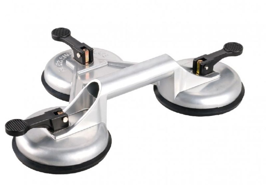 Tříbodové uchycení poskytuje jistotu a stabilitu při přenášení i usazování větších formátů, ať už jde o skleněná okna a dveře, vitríny, autoskla, nebo velkoformátové dlaždice a obklady. Každá přísavka má průměr 11,5 cm, díky čemuž drží pevně a rozkládá sílu rovnoměrně po celé ploše.