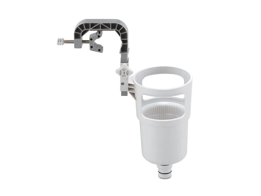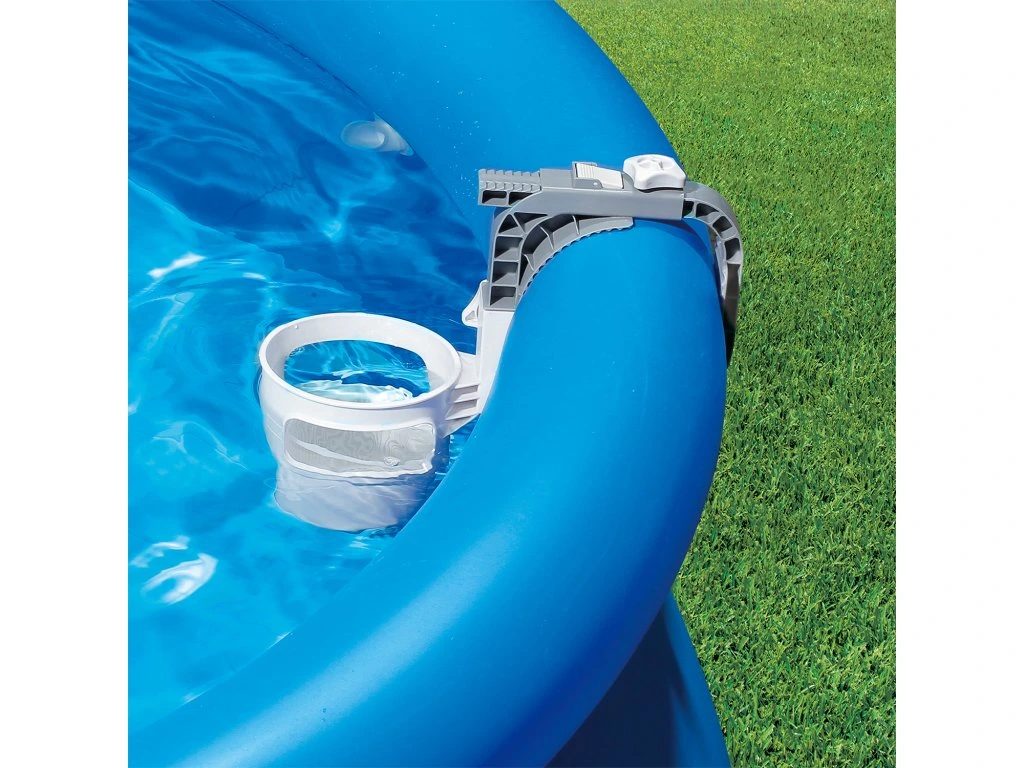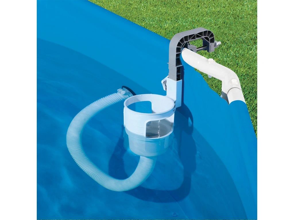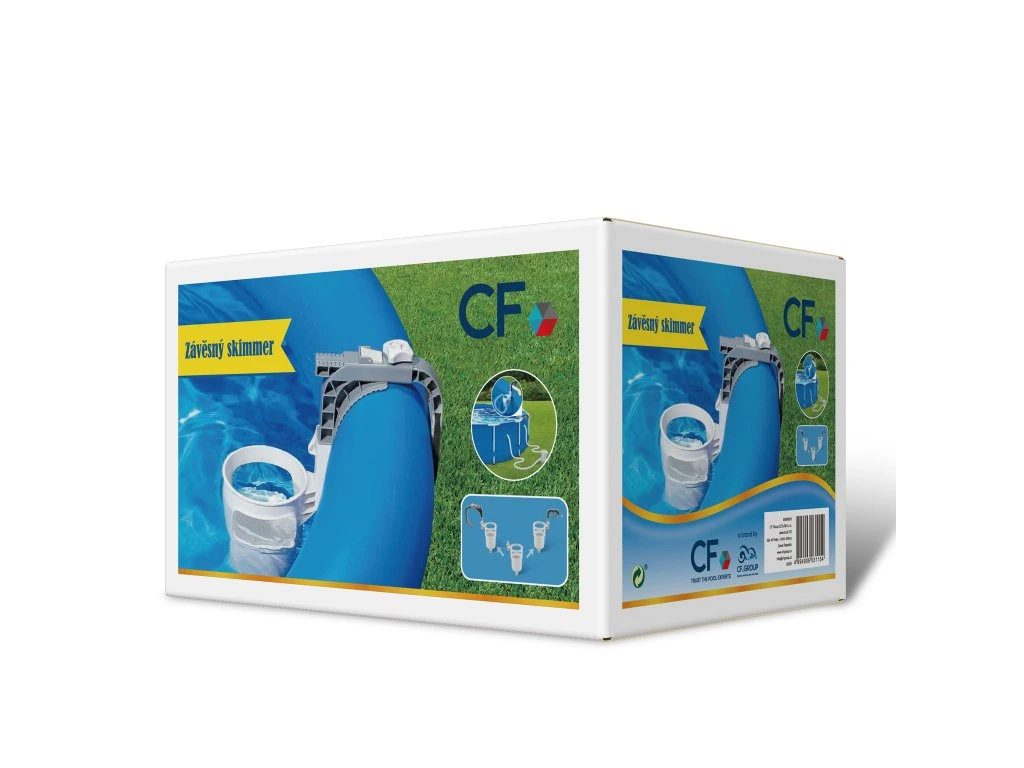 Závesný skimmer CF je ideálny na odstraňovanie plávajúcich nečistôt (napr. lístia, ihličia, hmyzu, vlasov a pod.). Skimmer je vhodný pre všetky typy bazénov s nafukovacím golierom alebo rámovou konštrukciou. Skimmer upevníte na nafukovací golier alebo pomocou vymeniteľného držiaka na rámový bazén. Prepojovacou hadicou spojíte skimmer s bazénovou tryskou (sacou), pričom použijete priložené adaptéry.