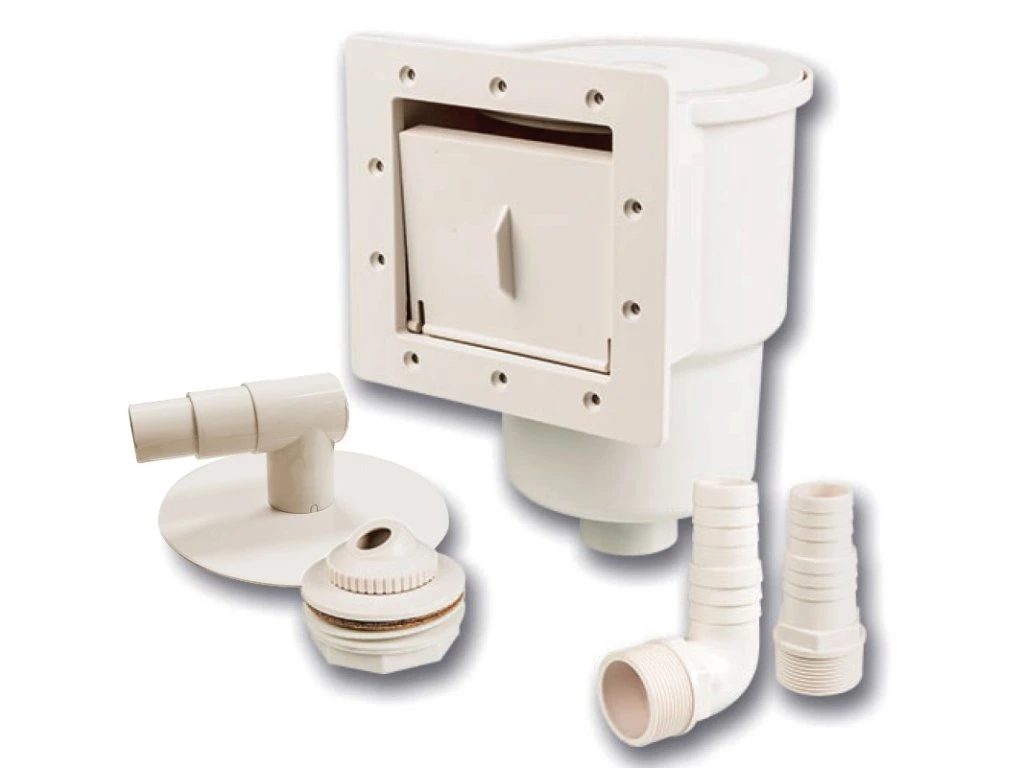 Univerzálny skimmer pre takmer všetky bazény s oceľovou stenou na trhu s otvorom v stene 148 x 140 mm. Skimmer je pripojiteľný na bazénové hadice s rozmerom 32 alebo 38 mm. Súčasťou balenia skimmeru sú vratná tryska (pre otvor 60 mm a pripojenie bazénovej hadice 32/38 mm), zberný košík, plávajúca klapka proti návratu nečistôt do bazéna a veko s adaptérom na pripojenie ručných a poloautomatických vysávačov.