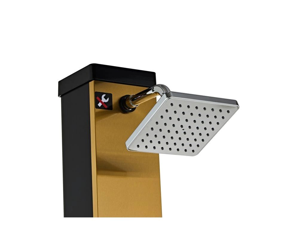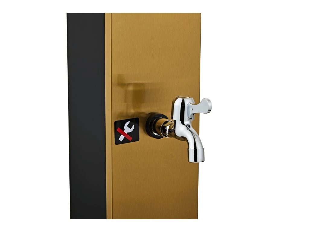 Solárna sprcha NEOVA Samos 40L v luxusnom čierno-zlatom prevedení predstavuje vrcholný doplnok pre vašu záhradu, terasu alebo priestor pri bazéne. Moderný dizajn sa tu spája s maximálnou efektivitou a ekologickou prevádzkou. Vďaka nadštandardnému zásobníku s objemom 40 l a fungovaniu bez potreby elektriny ponúka sprcha štedrý zdroj teplej vody na komfortné osvieženie, pričom šetrí vaše náklady na energiu.