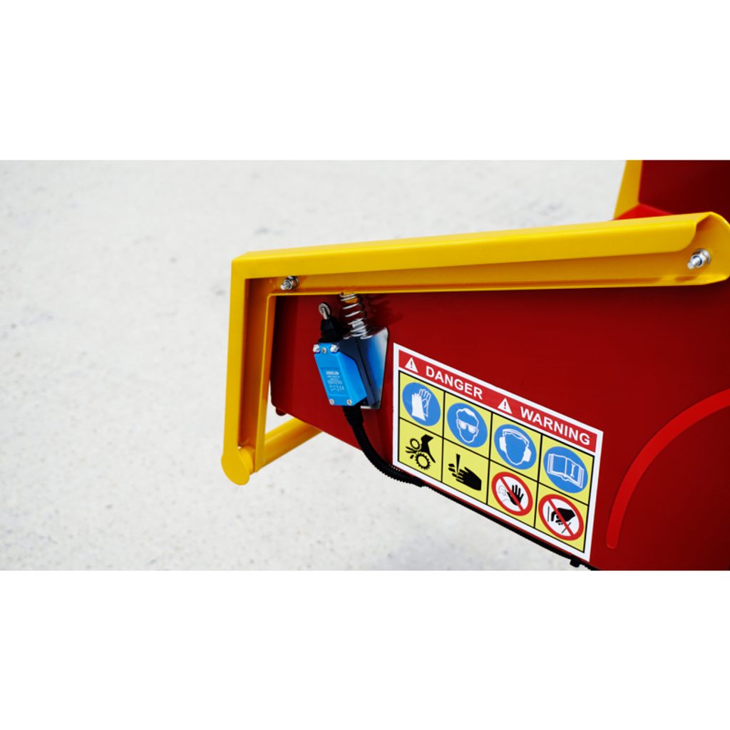 Mechanizmus automaticky vťahuje materiál podávaný na rezanie. Kovové kryty vstupného a výstupného podávača a indukčne kalené ozubené kolesá pre bezpečnú prevádzku sú samozrejmosťou.