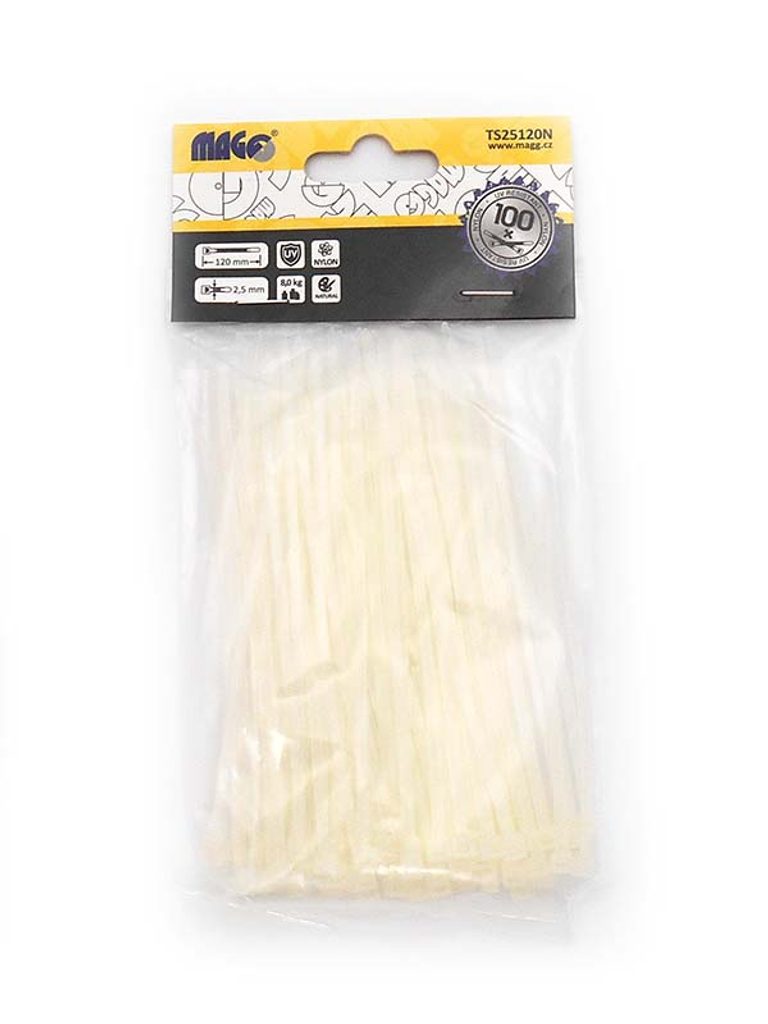Stahovací pásky bílé 2,5 x 120 mm MAGG TS25120N