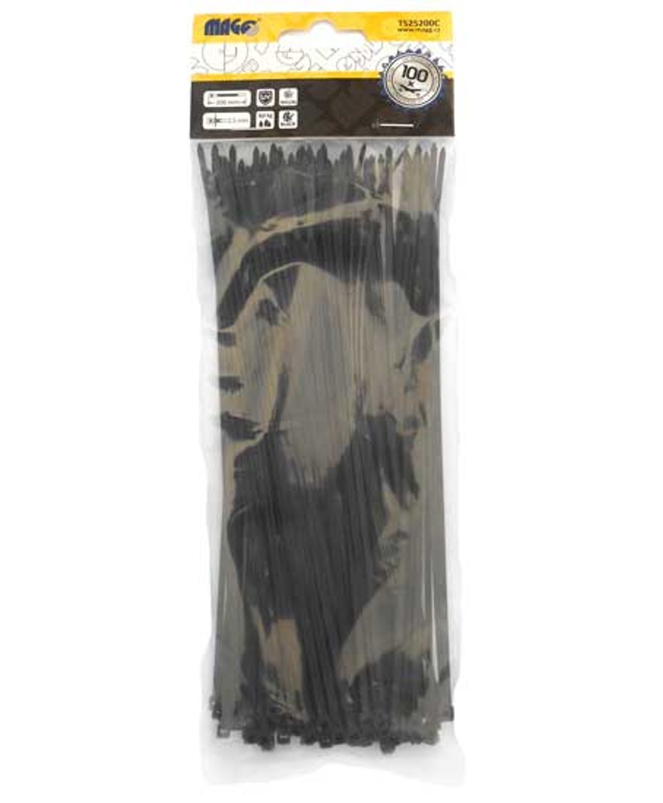 Stahovací pásky černé MAGG 2,5x200mm TS25200C