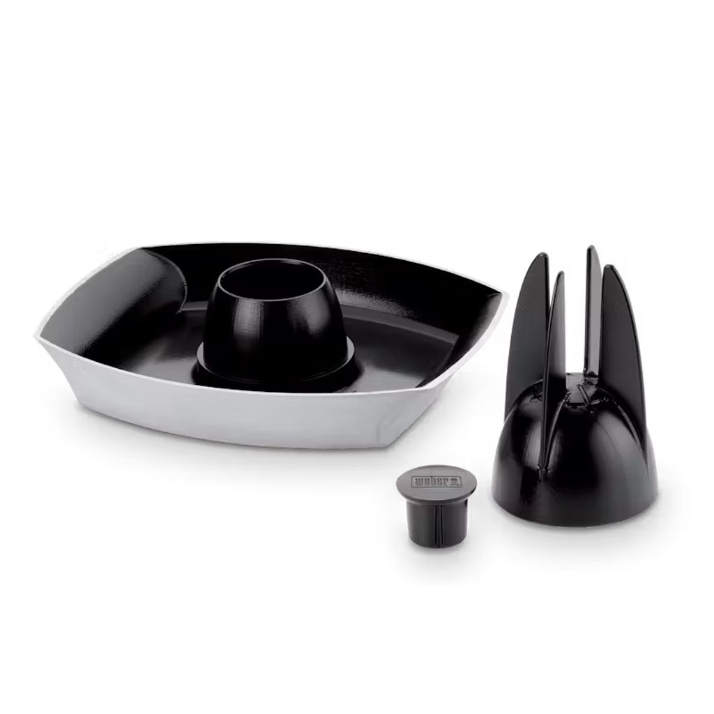 Pripravte si dokonale chrumkavé a šťavnaté kura s jedinečnými chuťami, ktoré vytvoríte pomocou piva, džúsu alebo vína. Stojan na hydinu Weber Deluxe je navrhnutý tak, aby udržal tekutinu, ktorá obohacuje mäso o intenzívnu chuť, a vďaka viečku uzamkne paru a zachytí šťavu na podlievanie.