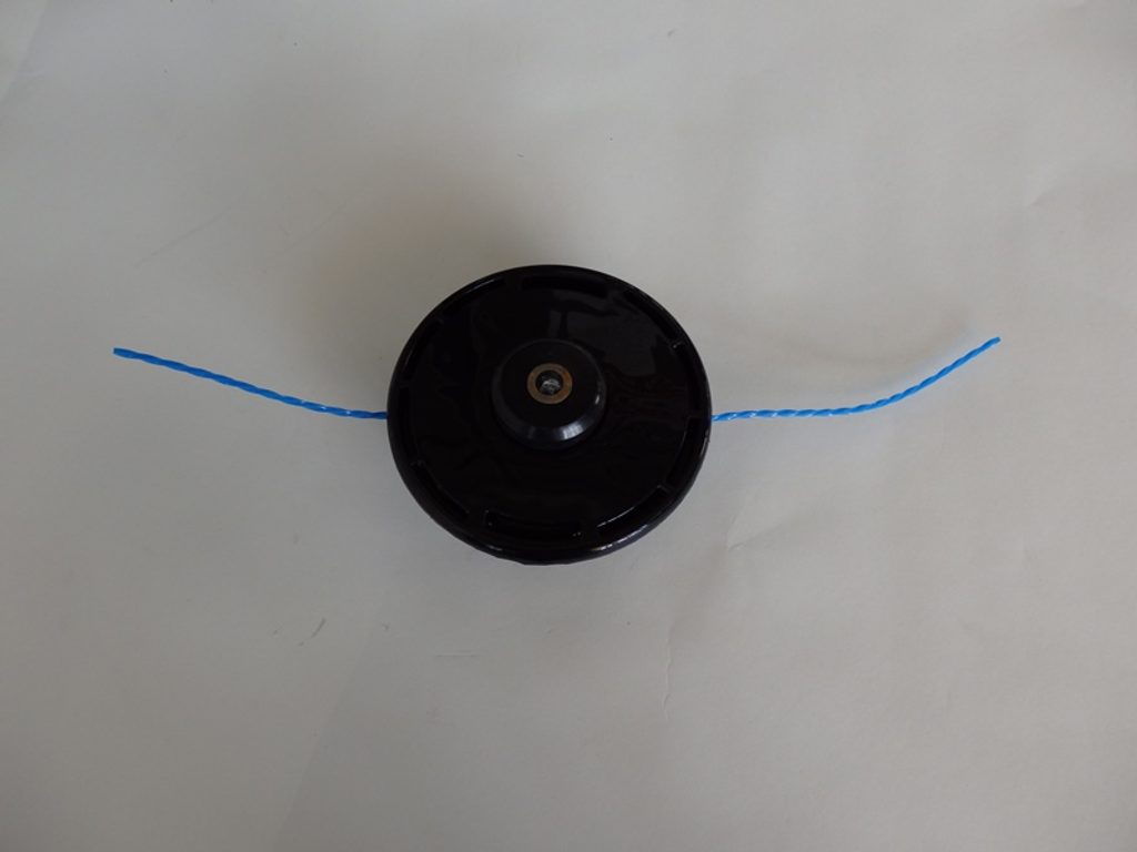 Ťuknutím o zem by se měla struna na sekání automaticky prodloužit. Zatím se tak neděje, neboť je struna špatně navinutá. Závity jsou různě přes sebe. Snad se mě podaří strunu navinout správně a že to bude fungovat tak jak má.