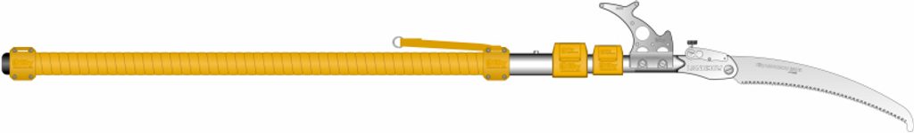 Všetky píly Silky s teleskopickou násadou majú pílový plát vyrobený rovnakou technológiou ako menšie píly. Teleskopická násada nie je kruhového prierezu, ale oválneho. Tým sa zásadným spôsobom zvyšuje tuhosť celého celku. Jednotlivé segmenty sú vyrobené z veľmi pevnej, ale ľahkej zliatiny duralu av dolnej úchopovej časti je píla vybavená perfektnou nekĺzavou rukoväťou zo špeciálnej gumy - GOM. špeciálnymi svorkami. Vďaka tomuto dômyselnému systému sa aj plne vysunutá píla na rozhraní jednotlivých sekcií „neviklá“. Môžete tak pohodlne a s výbornou kontrolou píly, rezať aj vo výškach dosahujúcich 8 metrov.